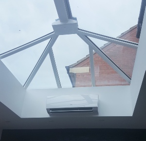 Heat exchanger/air conditioning mounted on the bulkhead of the orangery is a fantastic cost effective solution to provide any additional heat/cooling required.